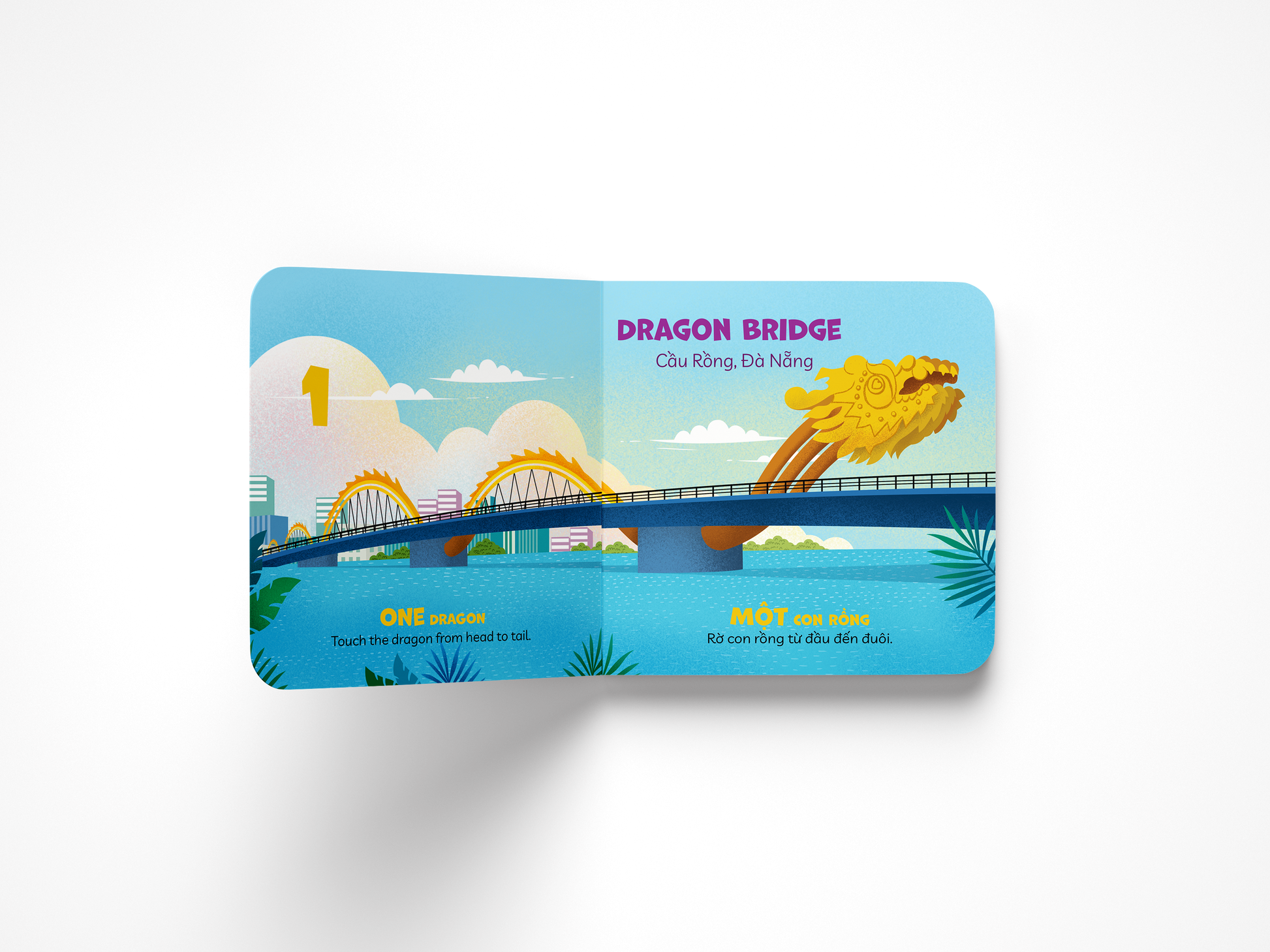This bilingual board book showcases Vietnam's famous landmarks and cities, like the Dragon Bridge in Đà Nẵng or the Imperial City in Huế. Each page contains interactive tasks to make it reading even more fun for your child. This is the perfect book to practice your 1-2-3s in Vietnamese and English.
